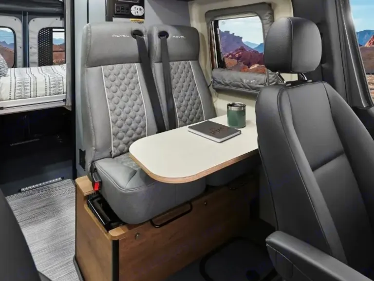 Built on the robust AWD Mercedes-Benz® Sprinter chassis, the Revel is equipped with a turbo-diesel engine and an automatic overdrive transmission, delivering 211 horsepower and over 330 pounds of torque. Exterior accessories, like the new tubular-style running boards and front fairing - that includes dual off-road 10” light bars with a combined 22,000 lumens of light - make the new Revel more adventure-ready than ever.Comfort