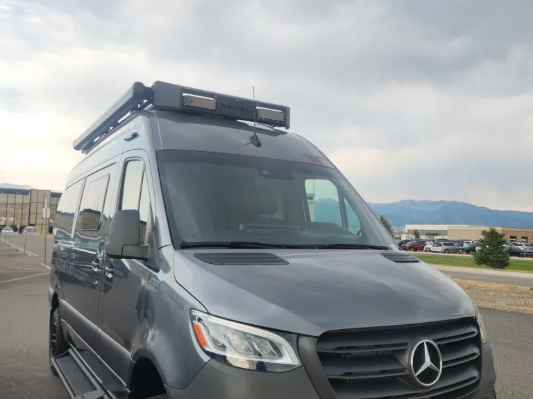 Built on the robust AWD Mercedes-Benz® Sprinter chassis, the Revel is equipped with a turbo-diesel engine and an automatic overdrive transmission, delivering 211 horsepower and over 330 pounds of torque. Exterior accessories, like the new tubular-style running boards and front fairing - that includes dual off-road 10” light bars with a combined 22,000 lumens of light - make the new Revel more adventure-ready than ever.