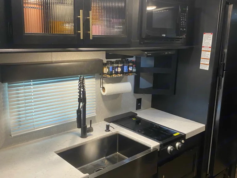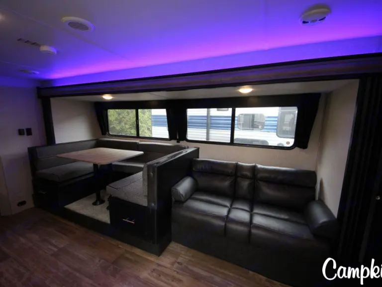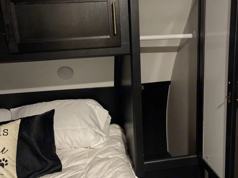 Our 2021 River Forest travel trailer RV Sleeps 7 comfortably, with a queen sized bed in a separate bedroom, with storage under the bed, which has a 2.5 inch memory foam on top of the mattress. There are closets on both sides of the bed & plug ins & usb slots. Optimal lighting throughout & full sized mirrors in master bedroom, & a 30 inch flat screen with Roku. Living room/ kitchen combo includes a fold out leather couch, wrap around sectional dining room table that folds out to comfortably fit 2 adults or 2-4 children. 2 burner stove. A refrigerator & freezer, farmhouse sink, microwave, & keurig, which has plenty of keurig pods. A large pantry with tons of space. A nutribullet & other cooking utensils. A 43 inch Roku flat screen tv over the LED fireplace. The fireplace turns different colors. Bluetooth speakers throughout the RV inside & out which can be paired with your phone. The bathroom includes a tub & shower. Some bath items are included. A bunkhouse with tons of space, large sized & a privacy curtain. Separate reading lights in each bunk. LED lights, Awning, bluetooth speakers outside, along with a dog leash attachment, & outdoor shower. Tons of storage for luggage, etc. easy to hook up to a truck or we can move it to an RN park of your choosing in the Pensacola/ Pensacola beach area. So excited to help people enjoy our RV as we have!!Ce qui est inclusFresh linens