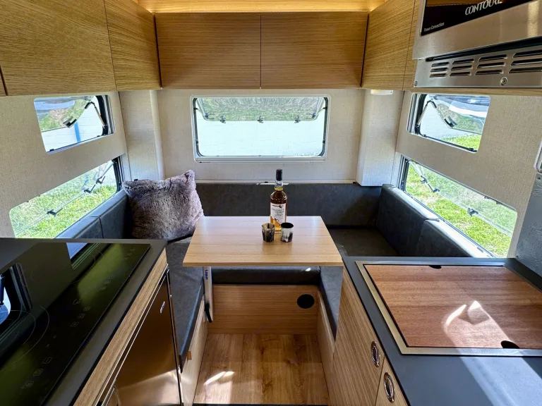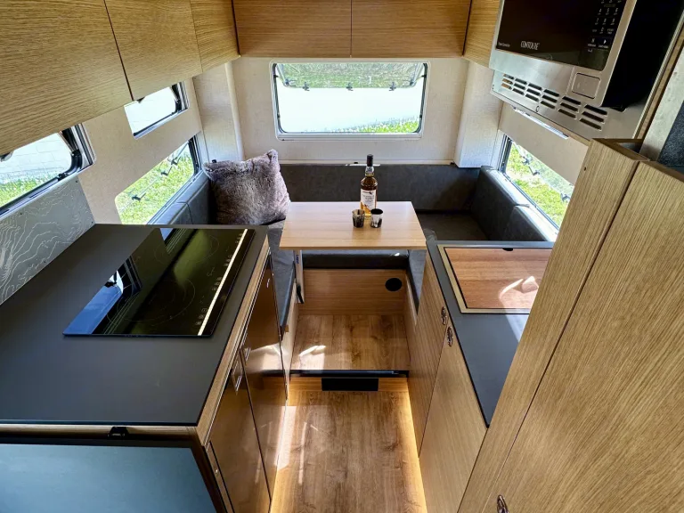 Enjoy extended off-grid comfort with solar, a huge water tank, and full kitchen.