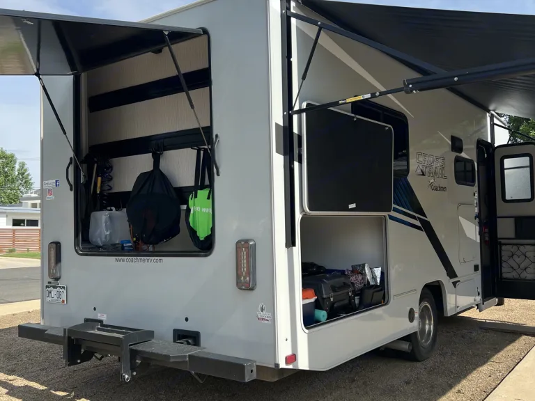 2022 Coachmen Crosstrail 23XG Class C RV (no slide outs)Bilstein steering stabilizer and Sumo springs added for comfort and ease of driving=less fatigue, ample power-Ford E350 motor, lots of power to navigate the Colorado mountains with overdrive, 6 speed automatic transmission. Large fuel tank (55 gallon). Generator onboard. 30 amp cord (included). Large grey, black, water tanks w/heated tank heaters.This RV is simple yet practical with plenty of storage and space for all your basic indoor needs. Able to get into RV sites easily, back up and side cameras, (size is perfect due to RV size restrictions at several sites).