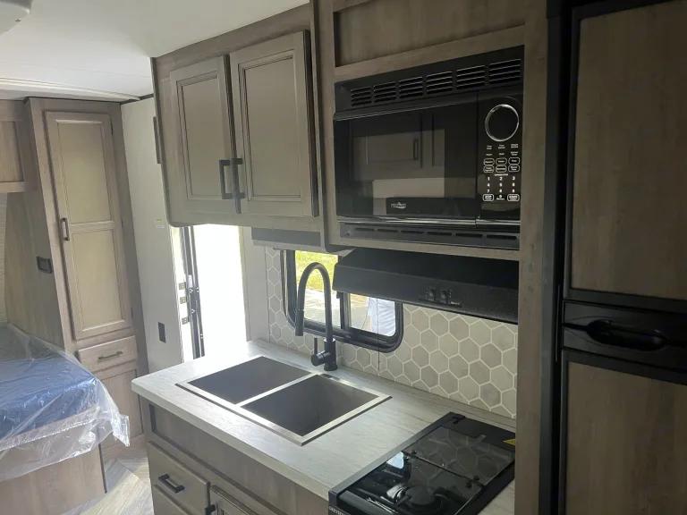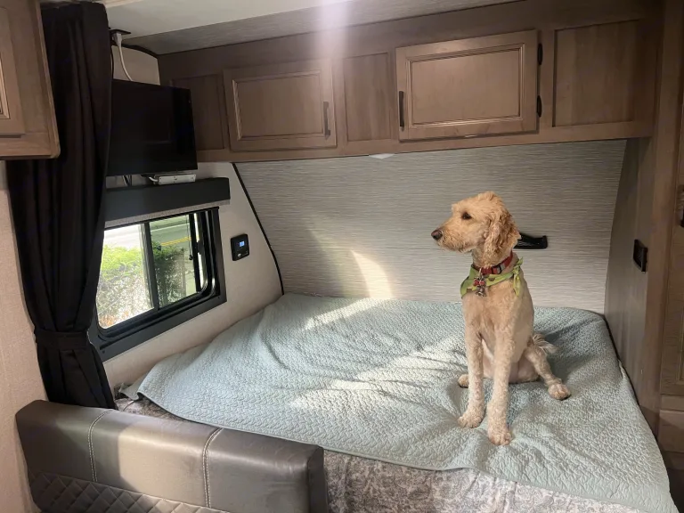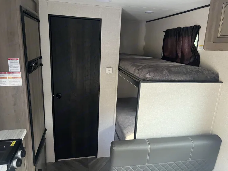 This comes fully equipped with full-sized bed, bunk beds, kitchenette table bed converter, shower/tub, toilet, sink, stove, microwave, full fridge and freezer, solar built in, with all the blue tooth stereo sound throughout and outside. TV Wi-Fi available, lots of storage under the beds. If ever you are boondocking or tail gaiting this also has a remote start propane/gas generator. Super cold AC.Ce qui est inclusFresh linens, comforters & new pillows, coffee maker, 4 x camping chairs, dog tie cable 30ft, all cookware pots and pans and utensils. This includes a portable camping table and tabletop Coleman gas grill. Recommandations30-45 minutes to all major beaches New Smyrna Beach, Daytona Beach, Cocoa Beach. Plenty of camp sites close to the attractions, State parks like Blue Springs and Wekiva Springs with tons of trails for hiking and fishing,