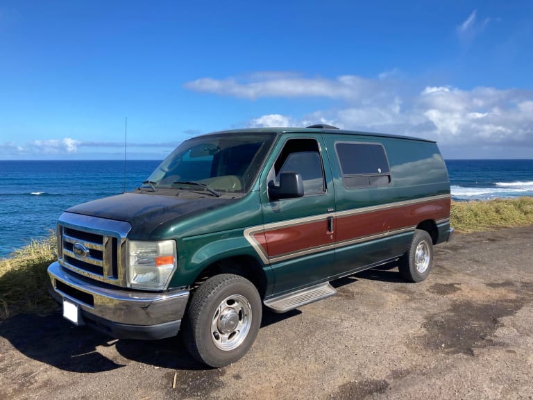 The Little Green Honu is a 2008 Ford E-150 Camper Van that is ready for all your Maui adventures! Honu is fully equipped for all your camping needs, whether you decide to hit the beach and relax or go up the mountain for some cozy, upcountry vibes. The Little Green Honu is spacious inside, but easy to drive and rides smoothly for the perfect island road trip.Ce qui est inclusOur camper van includes fresh linens, pillows, blankets, towels, an ice chest and storage chest, a foldable table so you can enjoy yummy meals and play games, two beach chairs for your island adventures, a battery-operated camping lantern, a Coleman stove with 2 propane tanks and a skillet and pan, cooking utensils (cutting board, knife, spatula, etc.), a solar shower, paper plates and cutlery, and of course two coffee mugs and a French press so you can make a cup of coffee anywhere the Little Green Honu takes you during your stay on Maui!RecommandationsThe Little Green Honu is the perfect vehicle for all your Maui adventures! Take a trip to the West Side and camp along the beautiful beaches, make the mission up the volcano to the summit of Haleakalā for the sunrise or sunset, or cruise across 52 bridges on your way to Hana.Autres points à signalerOnce you’ve rented the Little Green Honu, Maui is your oyster! We are happy to send you our list of suggested camping spots, but it is up to you to book all camping permits that may be needed.With your booking we will send also send you our list of all our favorite things to do while on Maui, which we’ve been curating during our ten years of living on island! Our list includes hikes, sight-seeing, adventures, happy hours, and experiences for both land-lovers and the water-lovers alike!Please drive safely, respect the people of Maui, and follow all driving laws. As a reminder, there is NO SMOKING allowed in our van. Please respect our property and our future renters. If any smoke smell or residue is found in our vehicle your deposit will be kept for deep cleaning.