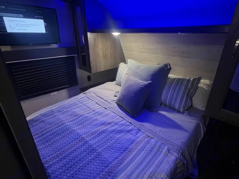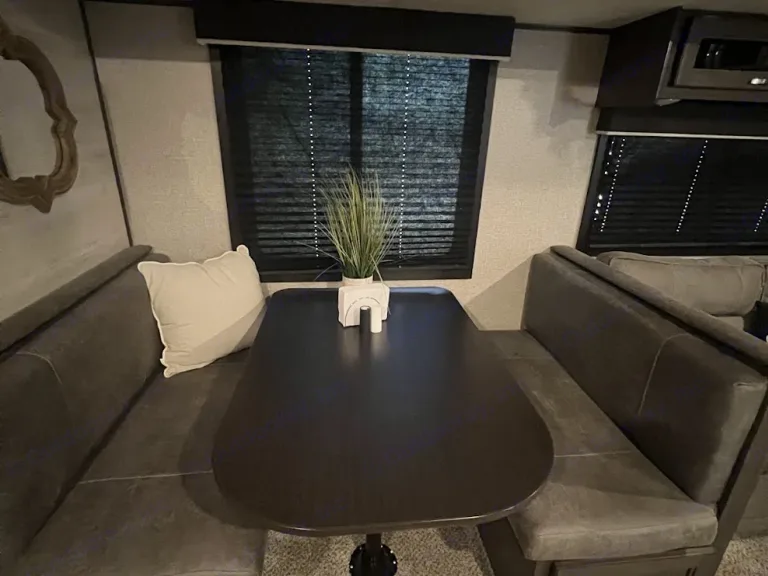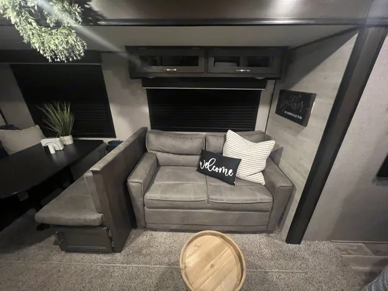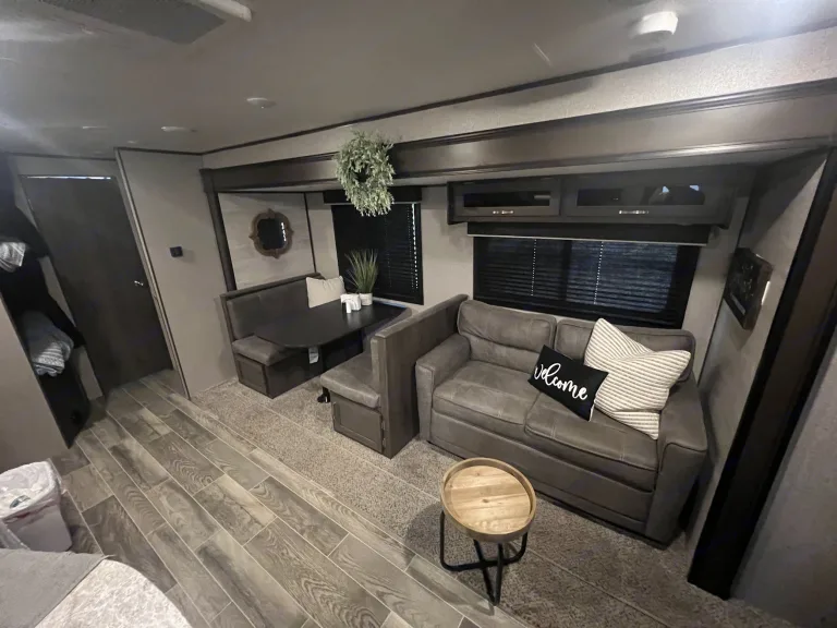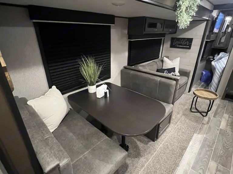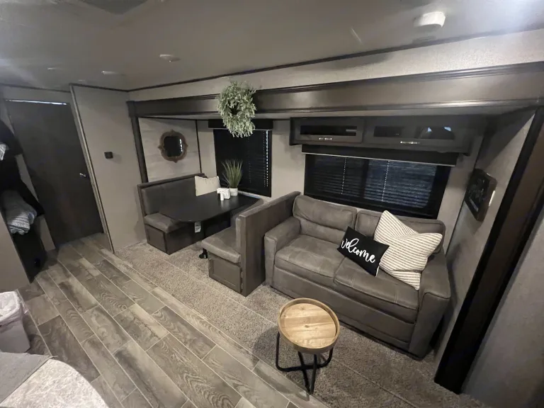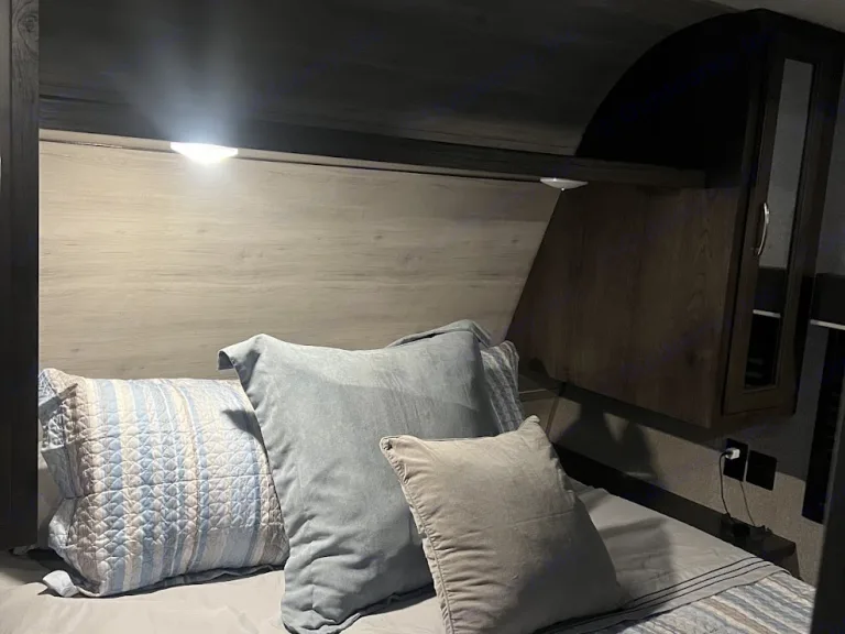 Comfortable Sleeping Arrangements: Includes a cozy queen-sized bed, bunk beds, a convertible dinette bed, and a pull-out sofa bed
