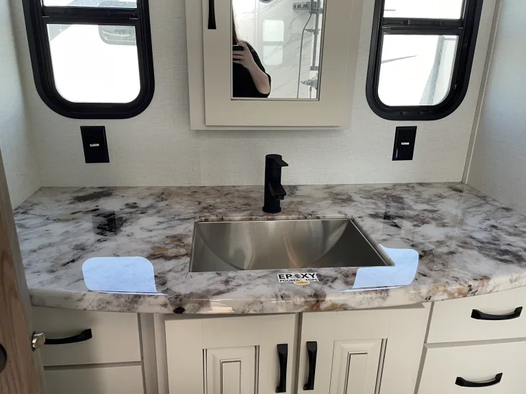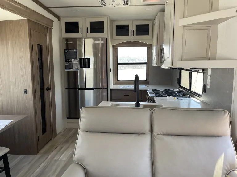 This 2023 Alliance Paradigm 382rk 5th wheel is truly a home away from home. With a large kitchen that includes all the amenities of home including a full size range and oven, large pantry and plenty of counter space.