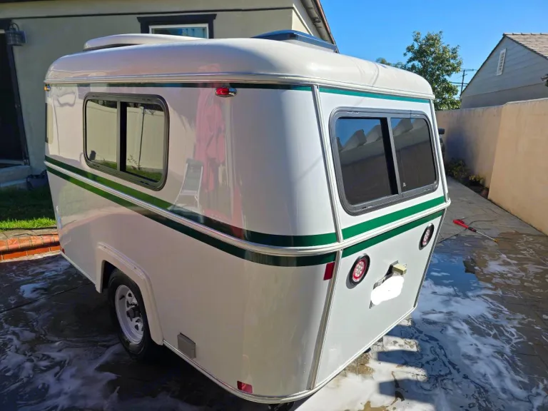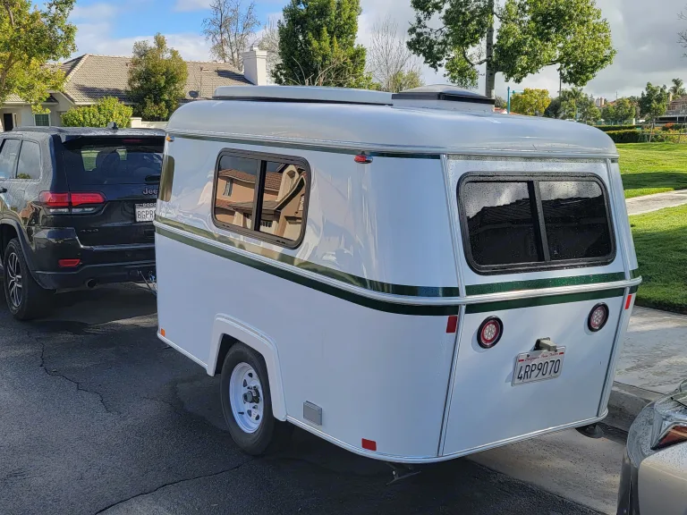 Weighing in at only 900lbs., this tiny but mighty "cute" MeerKat travel trailer can be easily moved around when unhitched, On the inside, it features a wrap around seating area with a table that can quickly be transformed into sleeping space at night, and a counter area in front that includes a sink and a drawer that holds a one-burner camp stove. There are three opening windows that allow plenty of fresh air inside, plus a fantastic fan. You will also find plenty of storage space under the wrap around seating, in the closet up front, and in cabinets and drawers beneath the counter. Ce qui est inclusstove, sink, cookware, two chairs. Hitch lock, manual levelers, wheel chocksRecommandationsGreat for taking to Joshua Tree, Mammoth , Beach areas Yosemite, the Sierras, It fits in so many spots that larger RVs wont fit in.Autres points à signalerNo off roading or taking on sand.
