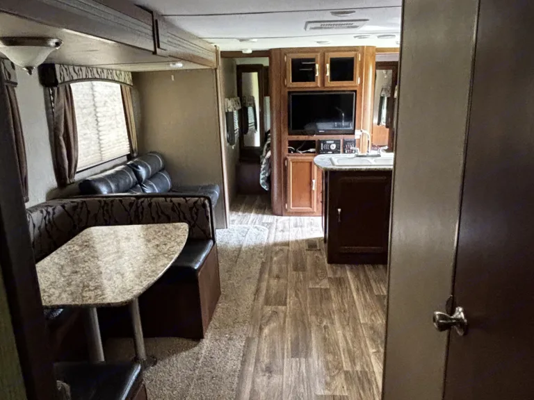 This beautiful 33 ft travel trailer has a lot to offer with three bunks, a queen size bed, a foldable couch and table there is plenty of room for the whole family, offering an outdoor kitchen two large awnings and two slides, making this trailer feel like a small home. In the large bunk room there is room to add another twin size air mattress or a pack and play for your little. No pets! We will deliver, setting up, and pick up the camper.Ce qui est inclus• Clean linens