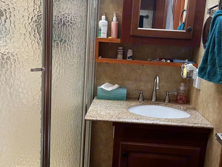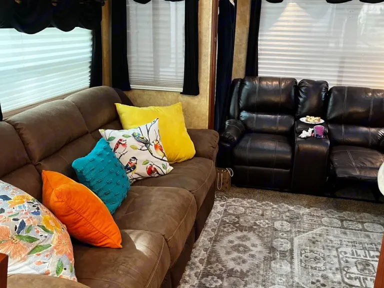 Sleeps two in a king bed with high quality mattress.Washer/dryer comboRoomy bathroom, living room and kitchen.Lots of windows allowing for lots of light.Ceiling fan.Filtered water in kitchen.Beautiful home away from home.***Must BE Delivered DUE TO THE Size AND Fifth Wheel Hitch Needed******Sorry NO Pets Allowed IN This ONE***Ce qui est inclusComes with a well stocked kitchen - toaster, coffee maker, pots and pans, cups, plates.