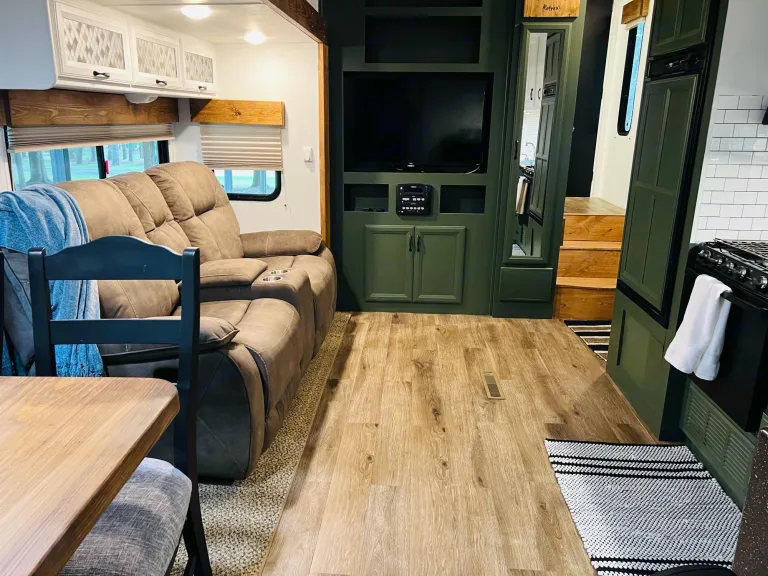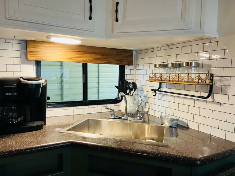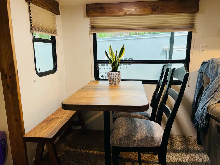 A fully equipped kitchen (Sink, stove, microwave, oven, refrigerator, and coffee maker. We have also set you up with all the dishes, 4 outdoor chairs, towels, kitchen utensils and cleaning supplies. The 4 slide outs makes for a very comfortable living space inside and the awning makes the Georgia heat tolerable!We Delivery Only within 50 miles of Montezuma, Ga We will deliver, setup, and pickup at the Georgia National Fairgrounds in Perry, GA, Fair Harbor RV Park & Campground, Crossroads Travel RV Park, Twin Oaks RV Park , Whitewater Creek Park and Southern Trails RV Resort.
