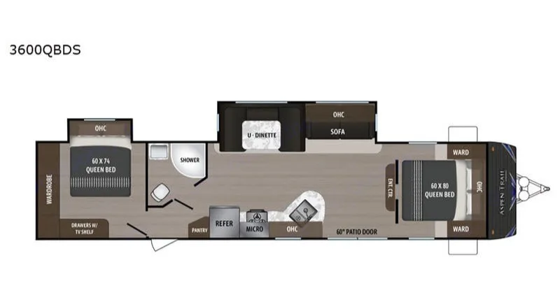 Ideal for active families, this RV features a rear entry bathroom for dirty feet.