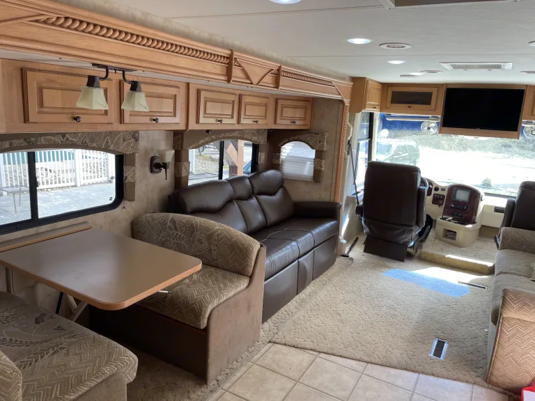 Good large RV. The AC fluctuates while driving. External garden hose was leaking so I had to borrow from someone in the RV park. It didn’t have 10 sleepers as advertised. Water was leaking from the roof onto the floor when the water pump was on. Refrigerator not cooling.