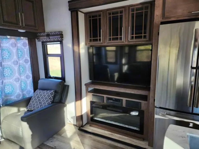 Master Bedroom: Upgraded king size mattress with power incline. For those cold nights, get cozy with the electric fireplace and enjoy a movie on the included TV! This master also houses the stackable clothes washer and dryer!Loft: Take the stairs to the all amazing queen sized loft. The loft features 120V power to charge those cant live without devices!Bunk Room: Pull-out queen-size couch with tons of storage room available.Living Room: Full-sized pull-out couch, Two standalone recliners in front of the sliding glass door to look out at the enormous outdoor patio!Our camper allows a maximum of 2 dogs. No other animals are allowed. Thank you for your cooperation in this matter.In order to fully take advantage of this unit, a 50amp full service site is recommended. If a 30amp electric service is selected, some features of the unit will be inoperable.