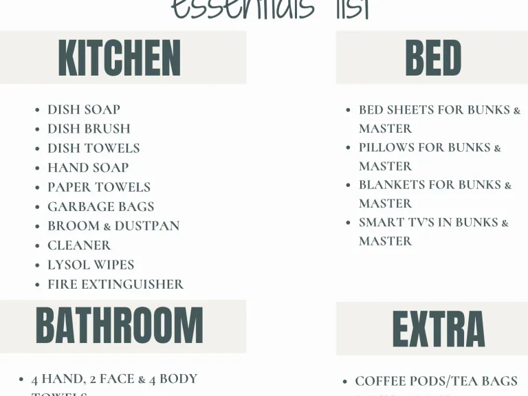• Paper Towels, Toilet Paper, Cleaning Supplies & Trash Bags (Amounts dependent on stay)