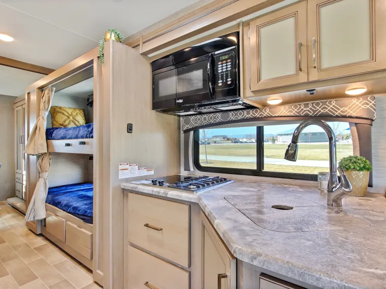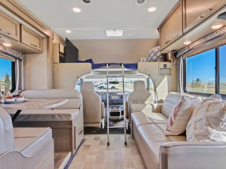 Embark on an unforgettable family adventure with our Thor Chateau 2021 31E Motorhome! Perfect for short-term rentals, this spacious RV features bunks, making it ideal for families or groups of friends seeking comfort and convenience on the road.Key Features:Bunk Beds: Dedicated bunk beds provide cozy sleeping quarters for kids or additional guests, complete with privacy curtains for restful nights.