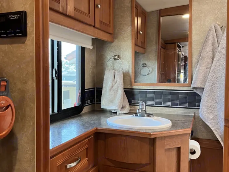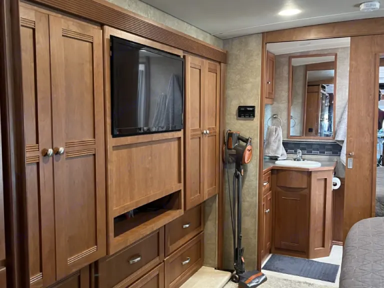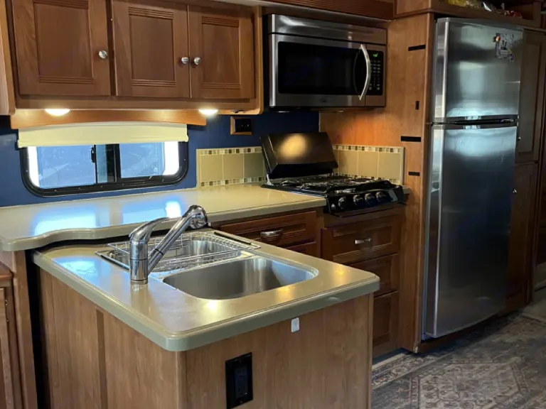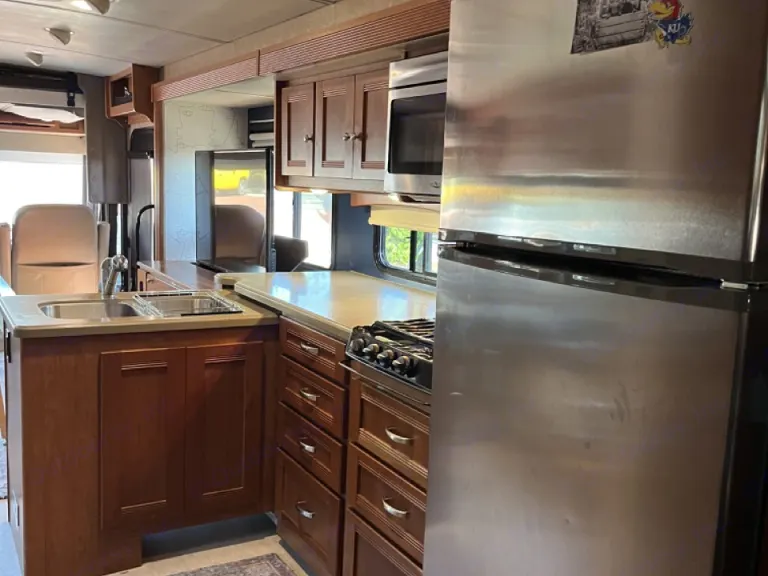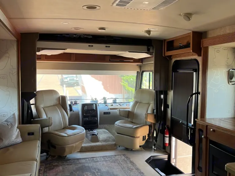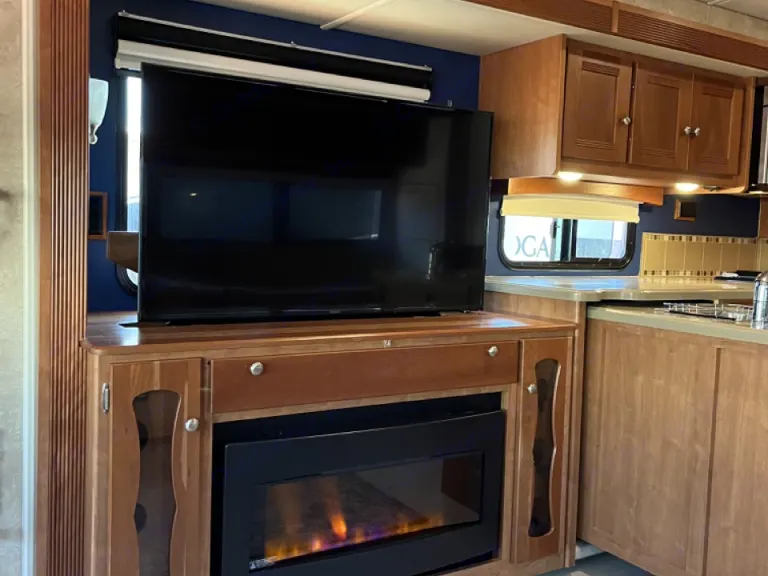 Our Class A motor home is in great condition and comes with everything you need - just pack your bags!We will deliver and set up everything for you!Owned by a couple with no children.The living room is spacious with slides extended on both sides. A 42 inch tv extends above the gas fireplace. Two captain chairs, a couch and bench provide maximum seating.A full size kitchen island, double sink, convection oven and 3 burner gas stove. The refrigerator is residential size with an automatic ice maker.All supplies needed to kitchen on us! *we will also stock with groceries per your request.One bedroom with a king size number bed for your comfort! Full size closets and drawers. A 32inch tv while you settle in for the night.All linens included.1.5 bath. One with a full size shower. Towels and toilet paper provided.An outside tv, comes with chairs and a gas fire pit for your evening movie nights!Two retractable awnings, one over the door and patio.Ce qui est inclusInside you'll find: fresh linens, fully stocked kitchen & dining essentials and bathroom toiletries.
