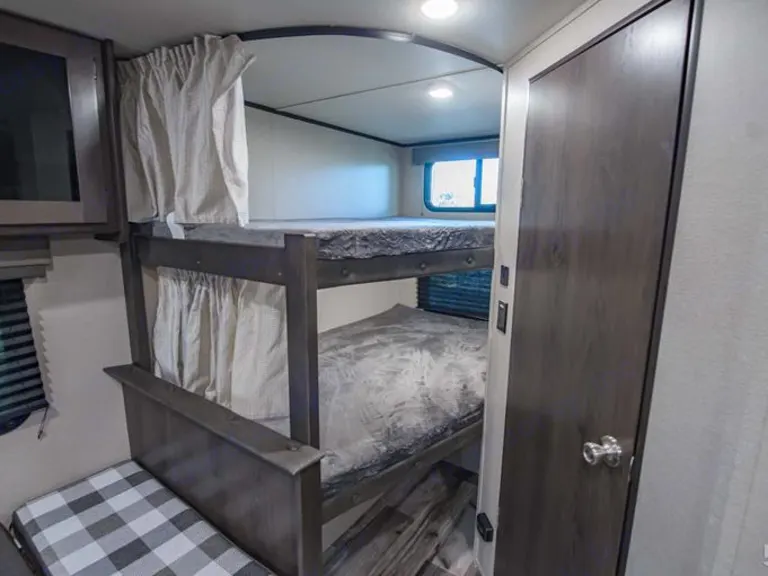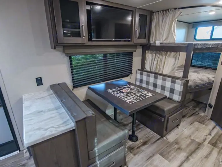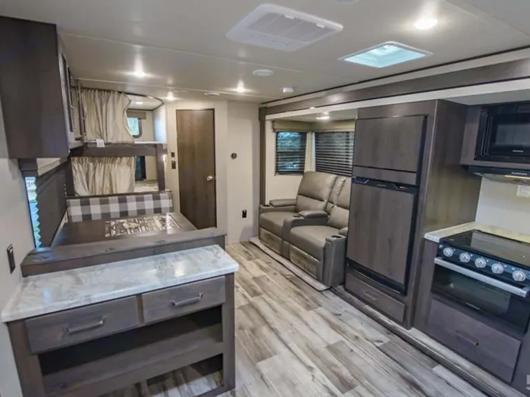 **Luxury Meets Adventure: 2023 Grand Design Transcend Xplor 261BH for Rent**Dive into the ultimate camping experience with this brand-new, top-tier 2023 Grand Design Transcend Xplor 261BH, available now for your next adventure. Whether you're escaping to the wilderness or exploring new horizons, this travel trailer offers the perfect blend of comfort, convenience, and versatility.**Key Highlights:**- **Spacious Bunkhouse**: Accommodates up to 8 with ease, featuring double over double bunks in a private room, ensuring everyone has their own space to rest and relax.- **Luxurious Master Suite**: Escape into your own private retreat with a queen bed, ample storage, and a dedicated space for unwinding after a day of exploration.- **Gourmet Kitchen**: Fully equipped with a 12V refrigerator, 3-burner cooktop, oven, microwave, and large sink. Enjoy meal prep with residential-style countertops and plenty of cabinet space, making every meal an event.- **Entertainment Ready**: Never miss a moment with a large U-shaped dinette that doubles as an extra sleeping area, alongside an entertainment center with TV prep. The AM/FM/Bluetooth stereo with interior and exterior speakers keeps the party going, inside or out.- **Outdoor Living**: Extend your living space with a 17' power awning with LED lights, perfect for those warm Florida evenings. The outdoor kitchen lets you grill up a storm while enjoying nature.- **Comfort & Convenience**: From the heated and enclosed underbelly for winter camping to the solar prep for off-grid adventures, this trailer is ready for all seasons and scenarios. Features include:- Power tongue jack for easy setup