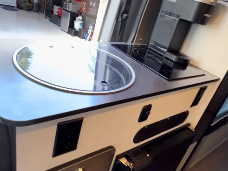 • A fully equipped galley kitchen with induction cooktop, fridge, and sink for fresh meals anywhere.