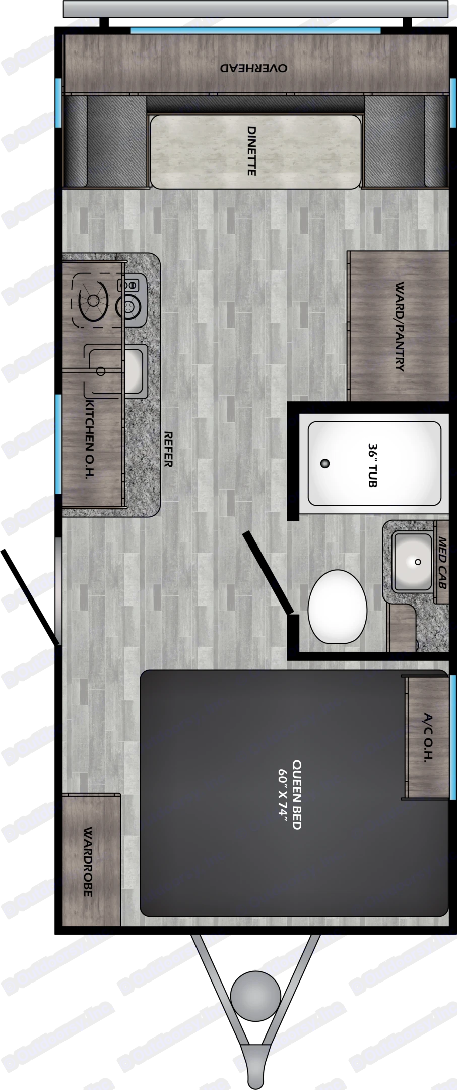 A/C, fridge, microwave, toaster, and sound bar operate best at full hook-ups.