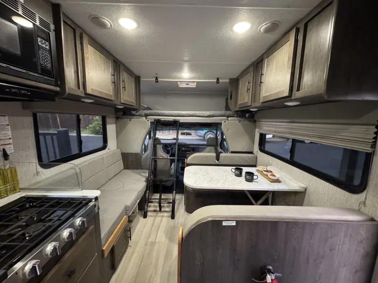 Particularity the main outside storage is large . An outdoor fold out table and 4 camping chairs are also included.Here is what you need to know:-Pick Up at 3 pm (unless other arrangements are made)-Drop Off at 12 pm (unless other arrangements are made)***Required Cleaning Fee: $200 (will be taken from your deposit)***Fuel refill service fee: $40 (only charged if gas or propane tanks are not returned full)***Required Dump Fee: $75 (will be taken from your deposit)Ce qui est inclus• Bedding