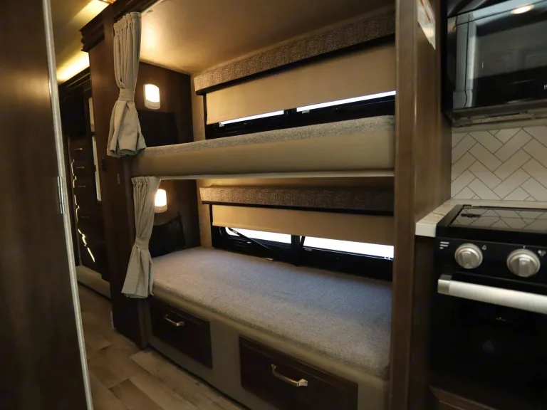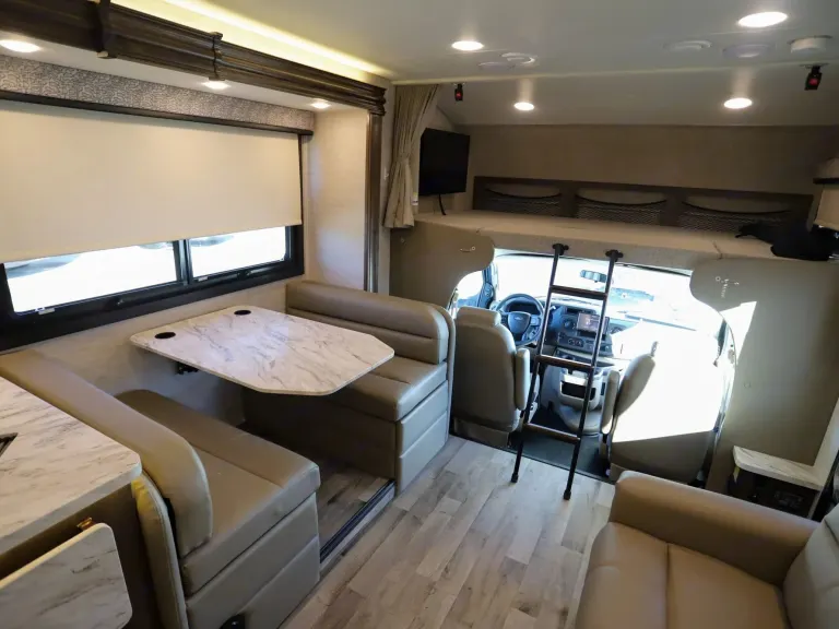 2021 jayco greyhawk fully equipped with a queen-sized bed, bunk bed, front cabin bed for two, fold out sofa, sink, induction stove, microwave, ventilation and heater, bathroom with shower and sink, hot and cold water, dinning table, tv with fire stick. Tons of storage space underneath for all of your adventure gear including clothes rack and drawers in the back room.This rig is also jam-packed with high-end components. Jayco has a furnace/water heater system, generator, propane, outdoor and indoor sound system.The drivability of this rig is easy and comfortable with navigation system and backup camera.Ce qui est inclus6x camp chairs, camping table, cooler, linens, cookware, utensils, games, fire log, bike rack.