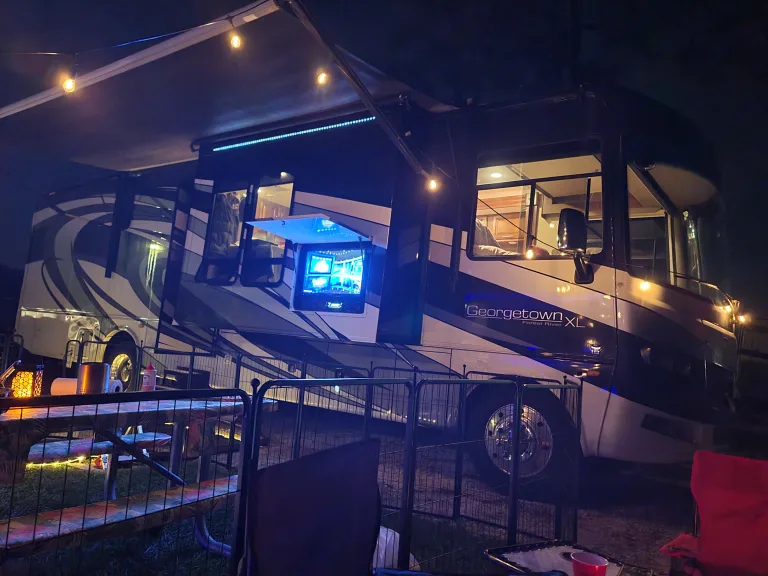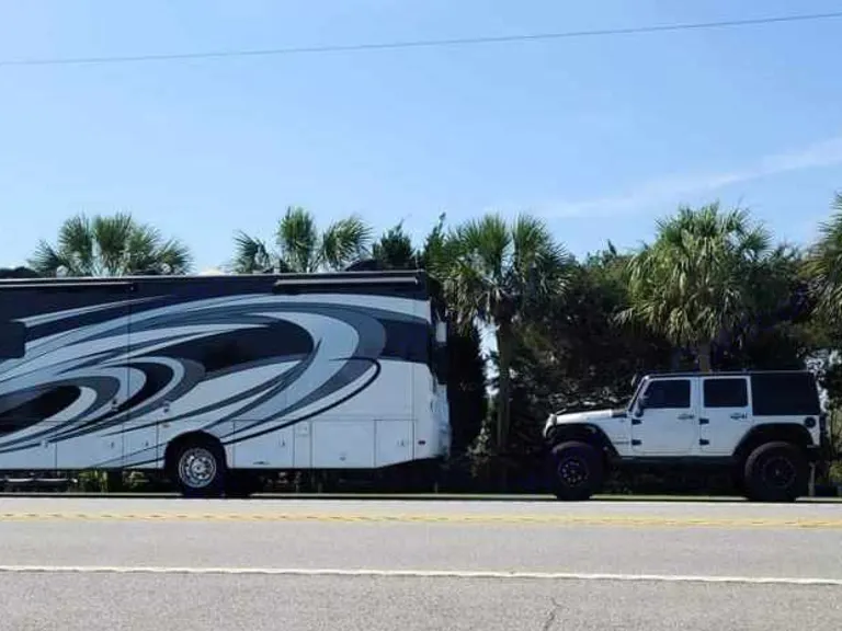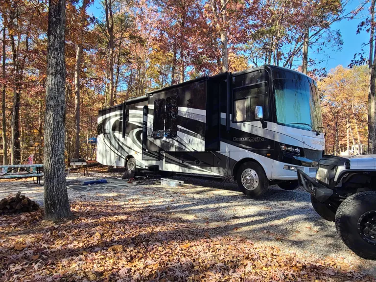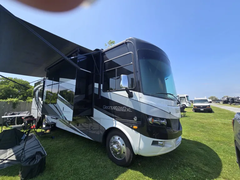 • This Class A RV offers a connected, comfortable escape for up to four.