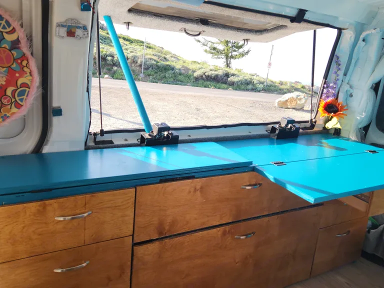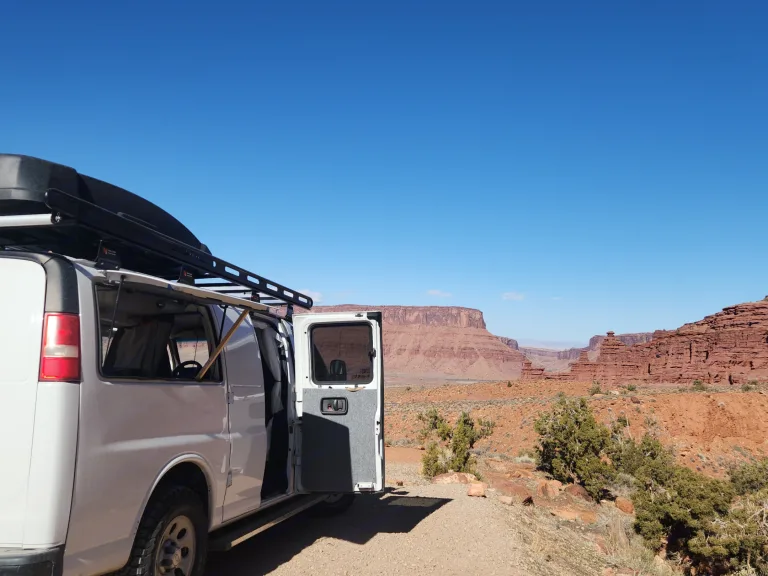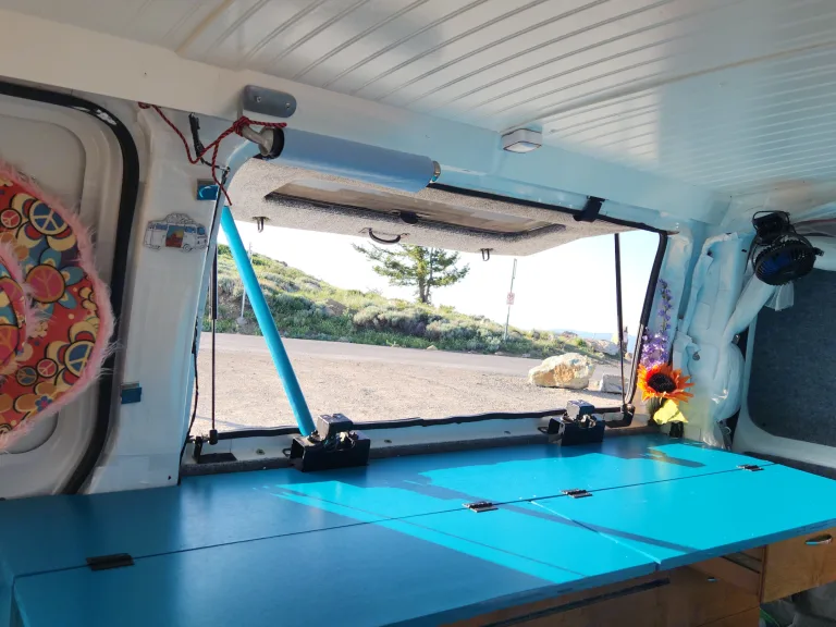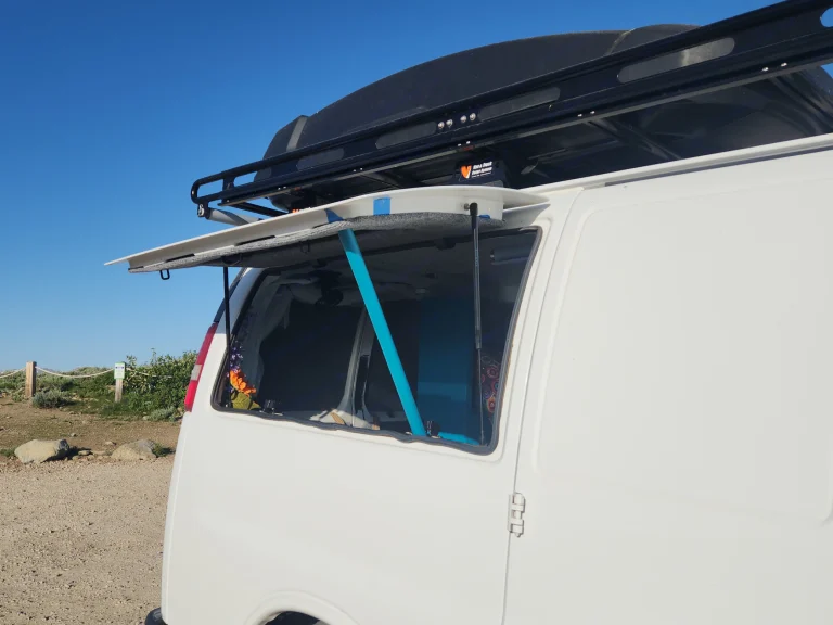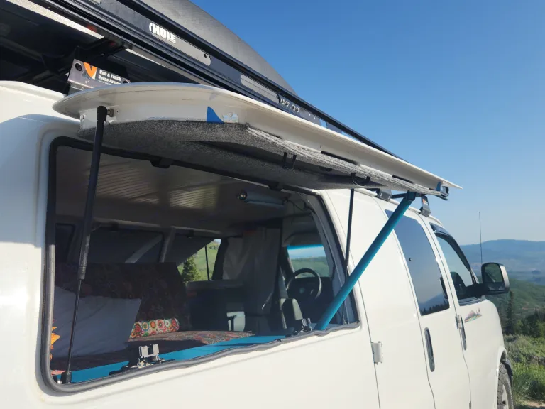 Hello! I have been 'playing' in the mountains and oceans my entire life. Originally from the west coast of British Columbia I relocated to Utah in 2002. I have explored up and down the coast of BC and all over the southwest, mainly in Utah. I built this van with the help of others so please know it is not a professional build, but it works great. I ski out of this van, paddle out of this van, hike and hit some mellow music festivals out of this van. The VanLorean has some great spots to camps