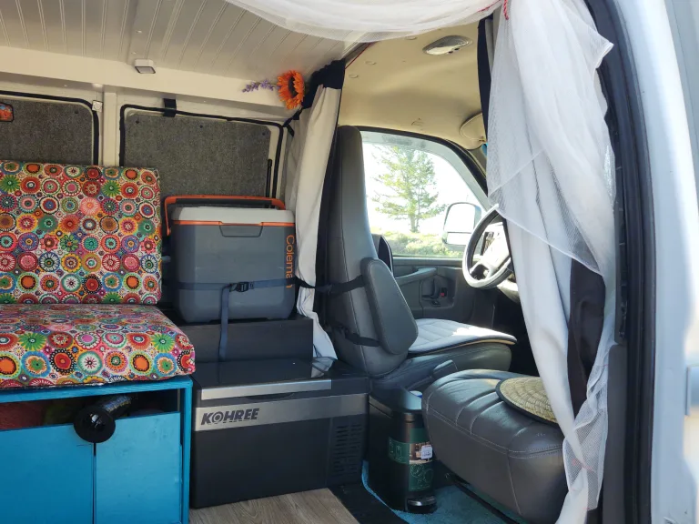 The VanLorean is a a great van for 4 season use! In Spring, Summer and Fall the side panels lift up for complete airflow, views and easy access to the bar. Equipped with an Espar Heater making it great for those cold spring and fall nights and of course winter. It has been a great ski vehicle for me! It has great tires and a lift of about 10" and AWD transmission so you will be able to go a lot of places.... not everywhere (it is not a Jeep). The slide out couch comes to 50 inches for a cozy sleep for two (4" cushions). Or, 39 inches when not slide out. Perfect for the single sleeper. Basic kitchen with dishes, wine glasses and such for 2 people. Yes, there is a coffee drawer with a small french press & pour over schtuff.Please note - The toilet is a portable item that uses bags after set up. * will add pictures this wknd. There is NO A/C in the sleeping area of the van. I have a portable fan, the little side windows open about 2". when the panels are closed. On the really hot days (when there are no bugs) I open up the panels for lots and lots of air flow.I have just posted this so will be getting more photos and details for you over the next week.Please ask any questions.Ce qui est inclus** Still building this section. Please ask!Kitchen: