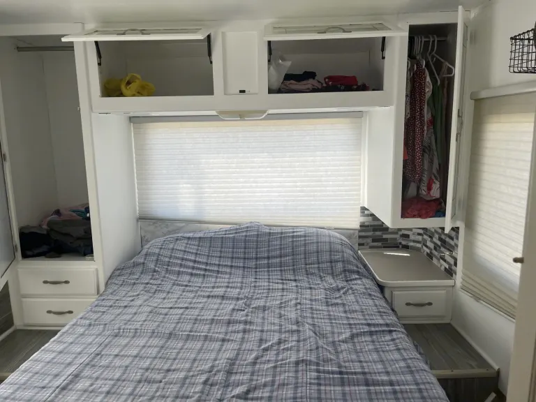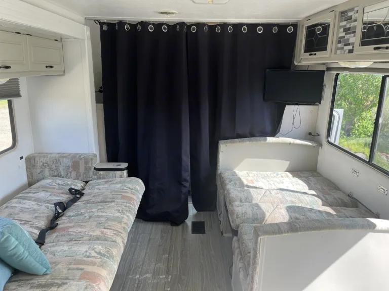 This Motorhome is perfect for a road trip! It has so much storage and places to sleep and fit the whole entire family. With a bathroom and shower on board you’ll barley have to stop. We’ve taken it on trips and it costs us less in gas then it would for a stay in a Airbnb or hotel so why not?? I hope you enjoy our Motorhome as much as we do!!