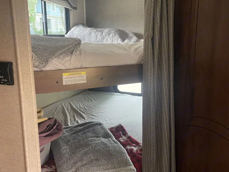You will Love your getaway in our beloved camper. This comes Fully ready to go with fresh clean bedding, towels, and kitchen items. It has an out door kitchen which is wonderful for hosting close by. We will have this camper set up and ready to go when you are ready!