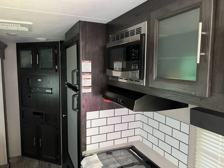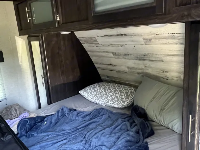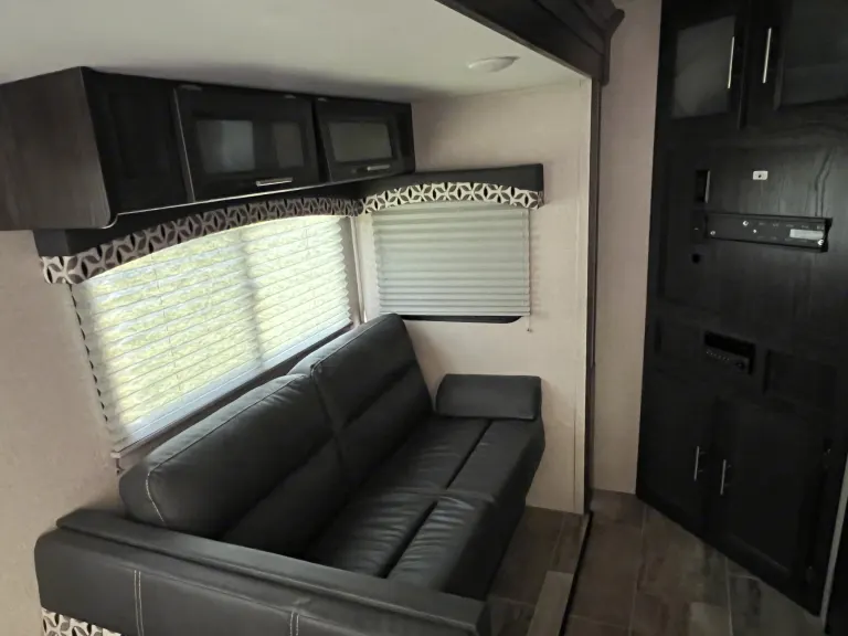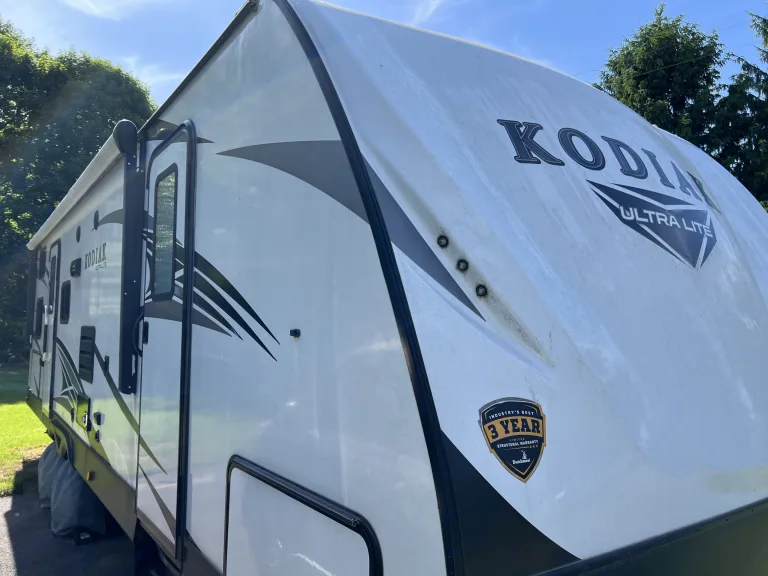 Family friendly RV. Ultra lite, includes a stabilizing bar making your towing experience smoother. Easily towable with a Ford F250 or similar vehicle.Include outdoor mini fridge & stovetop allowing for outdoor cooking. Also includes an out door grill. Has hanger for outdoor tv (removable when traveling between locations).Single bump out increases kitchen and common area inside. Master bedroom has sliding door for privacy from common area.Autres points à signalerPlease, no smoking inside the RV, it is a smoke free zone.