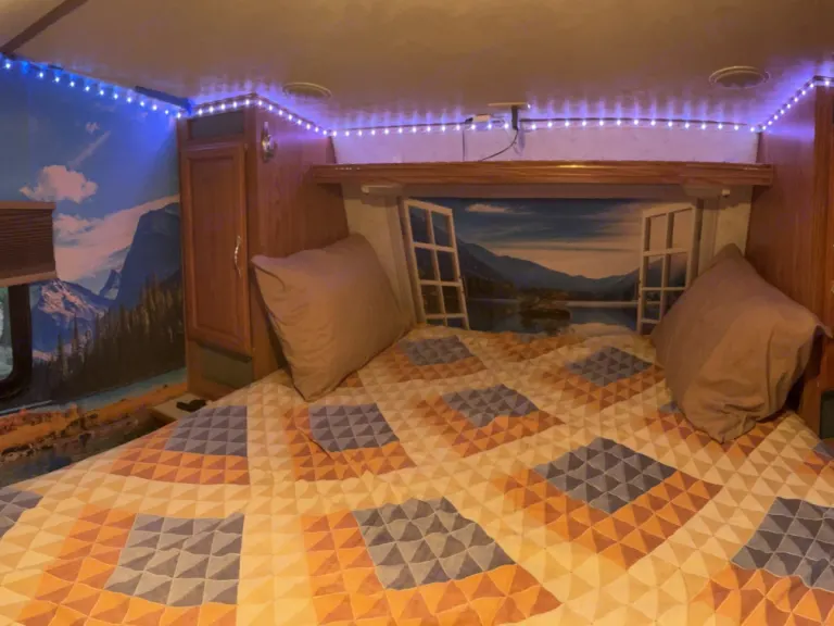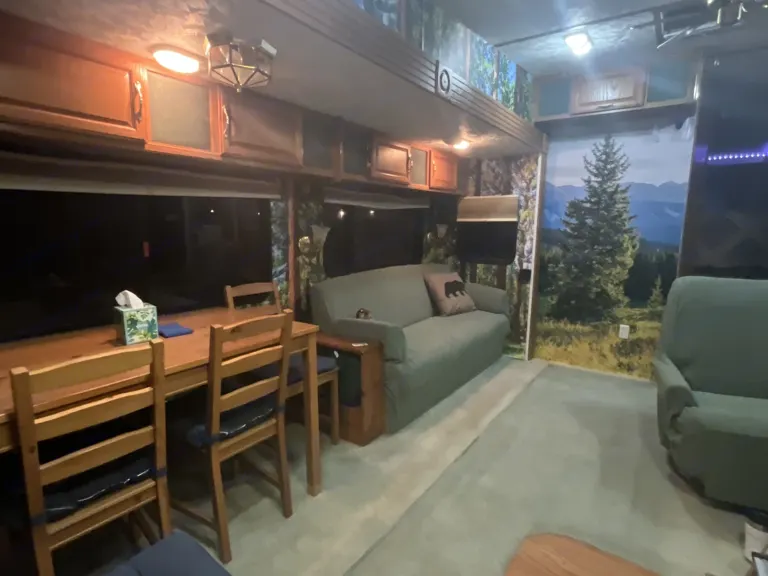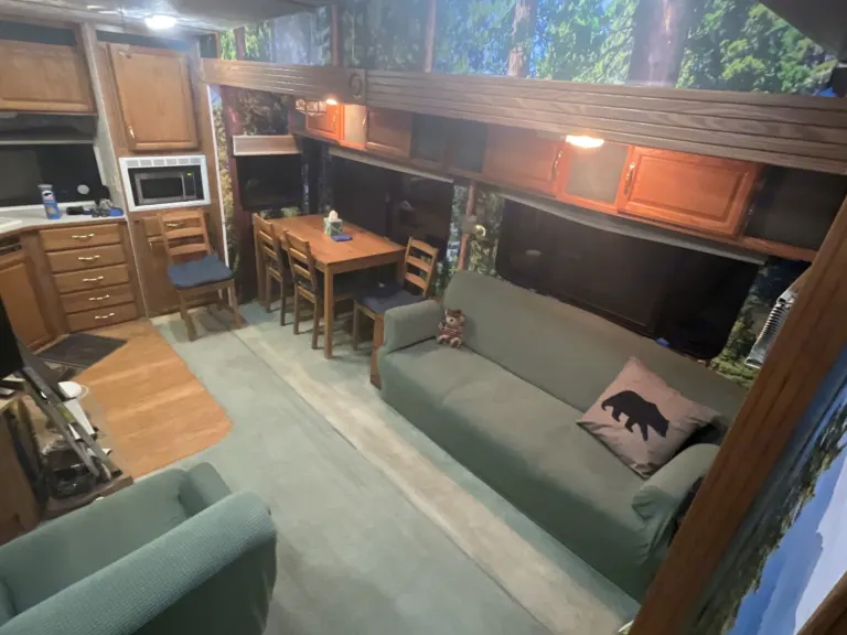 Step inside to discover this one of a kind beautiful panoramic outdoor ambience, indoors. Rain or shine enjoy the scenery. Comes ready to go with bedlinen, towels, kitchen essentials, Fire Wood, and games.WE Will TOW NO Cost TO Jenkins Lake (all other locations tow fees will apply). OR Pick up this RV on your way up the hill. We are located off HWY50 Sly Park exit.. Near Jenkins Lake, Ice House, Union Valley, Loon Lake to name a few. This RV has a high ceiling and open floor plan: 1 bedroom, 1 bathroom with shower skylight, spacious living room and kitchen.