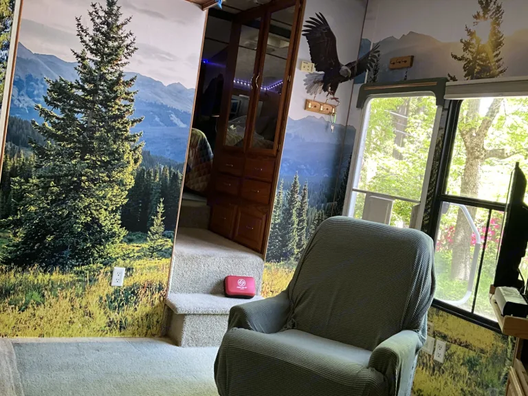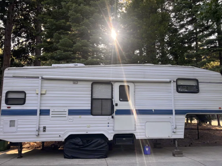 Camping without a camper.... Now we have one and would like to share with others. Offering the outdoor ambience inside. Rain or shine you will have a panoramic view. We can deliver, or you can pick up with 5th wheel hook-up options. We are located near Sly Park Jenkins Lake off HWY 50.
