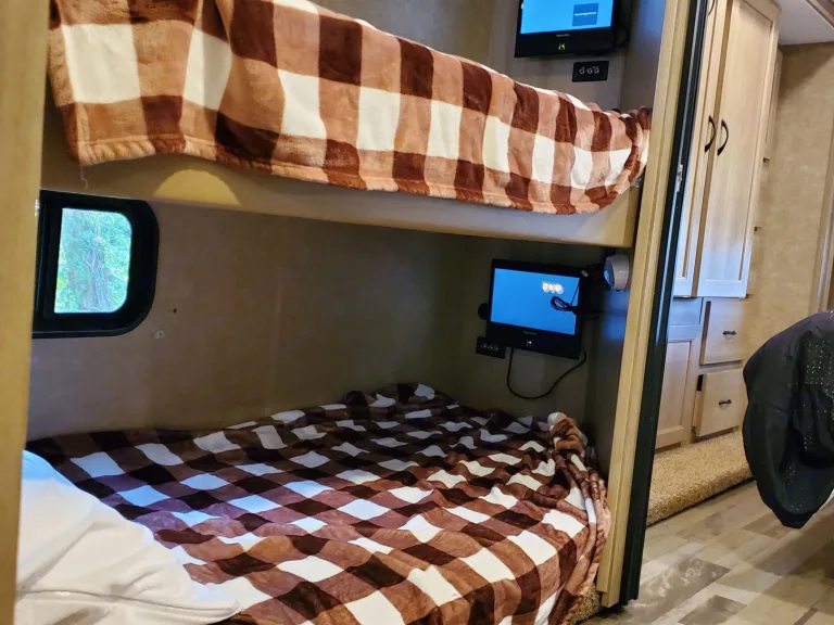 This 2016 Forest River Coachman Freelander family RV is a well kept, 33 foot, gas powered RV that is convenient for any group of family/friends. 2 slide outs expand the living area plus an awning extends the entertainment area for outside dining (with an outside TV.) The master bedroom has a privacy door & its own TV with plenty of closet & drawer space. When the door is open, the queen size bed looks at the two bunk beds (each with their own TV/DVD player). There is a large sleeping or storage area over the cab which easily sleeps two adults. The living room has the largest TV, a DVD player, & the rooftop antenna controls. The full size couch & dinette booth both covert to beds. It should easily sleep 8 adult & 2 kids.The premium amenities that came with this RV make you feel like you have your home with you. Plus the RV is stocked with almost everything you could need, including cook wear, mixing bowls, utensils of all types & even some common spices/pantry items. The air keeps the RV cool even in the Florida sun & the heat keeps you warm even in Ohio's winter. There is a bathroom with separate toilet & glass doored shower. The stove/oven & hot water heater run on propane, & refrigerator on either propane or electric. The generator runs on the same gas as the engine & can run the air conditioner & 110 plugs. There is also a 30 amp plug to use electricity at a campsite that helps keep the two 12 volt batteries for the living area charged.This rig is so easy to drive & set up, it can be done easily by one person. There is a rear facing camera that can always stay on. At a campsite, you would just back in, put the slides out, plug it in, hook up the water, cable and sewage hose, leaving the gray water open & only dumping black water when full.For outside fun, there are led lights to attach to the awning, a hammock with a stand, a plastic picnic table with 8 folding chairs, two sports chairs, a propane stove outside, & a smokeless fire pit.Ce qui est inclusFresh linens, pillows, foam padding for all sleeping areas not beds (must request due to space requirements), towels, washcloths, floor mats and rugs.Outside table and chairs, plus two camping chairs. Hammock & Stand. LED lights.Cookware, utensils, mixing bowls, regular coffee maker, ice tray. You can rent a portable icemaker for an extra $25, but note it takes up a large amount of counter space.There is a rooftop antenna but I will include two other attachable digital antennas just in case you don't get good reception. There are a total of 5 TVs! Plus you can add a rental of a Verizon high speed hotspot for an extra $50.If you are flying in & would like to use some coolers, please give me notice. We can discuss anything else you may need.