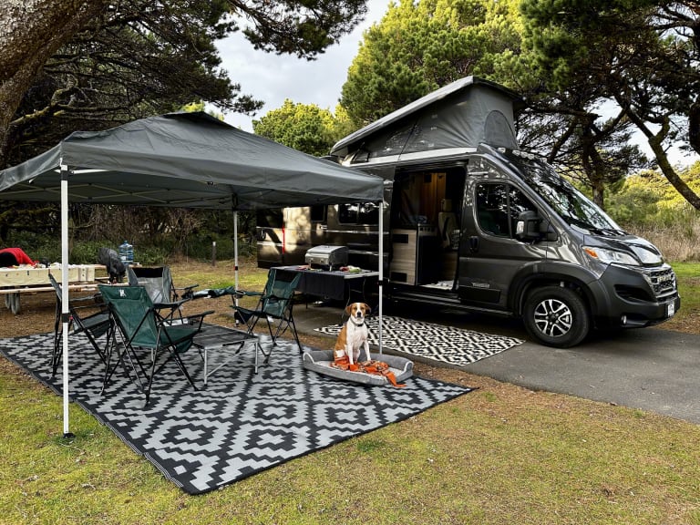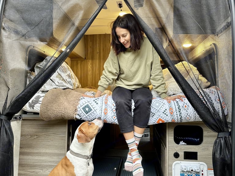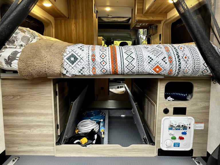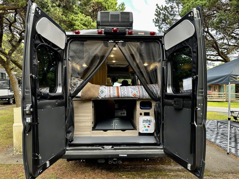 **Discounts: 10% for 1 week rental, 15% 2 week, 20% 30 day rental. Please reach out if you have a special/long trip planned! (Longer than a month)***FAQ: Pickup anytime on first day of your reservation and return anytime on last evening of your reservation*Fun for 4! 4 seatbelts and 2 full sized beds make this van comfortable for up to 4 people!Lots of extras included at no extra charge! See list below.This van is a NEW chassis 2023 with an improved cockpit over previous models which makes driving it a dream: 10" display, CarPlay (connect your iPhone with Google Maps and Spotify) and other connectivity.