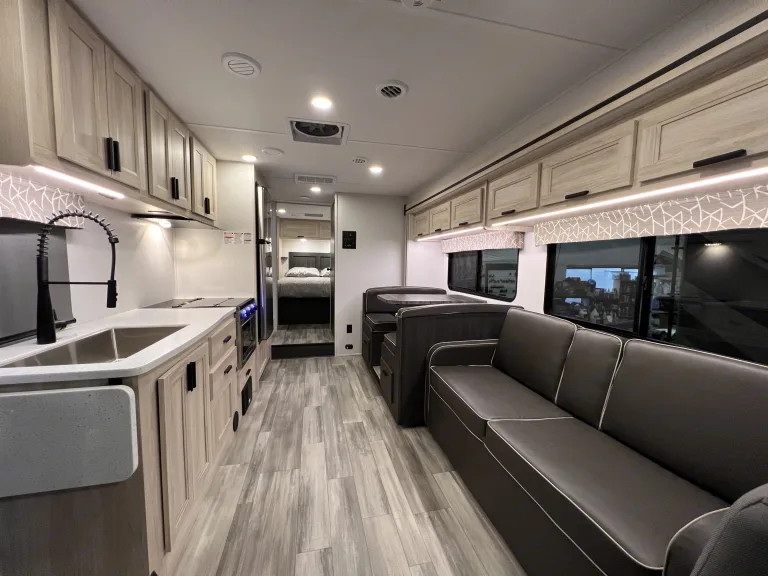 Forest River Sunseeker 2850 SLE (super slide)31 Class C amazing floor plan automatic Awning, spacious slide out queen bedroom, large two door refrigerator,3 burner range and oven, built-in microwave, thermostat-controlled air conditioning and heat, 110 on board powerplant, TV, new Ford V8 engine, two queen beds and two small double beds.