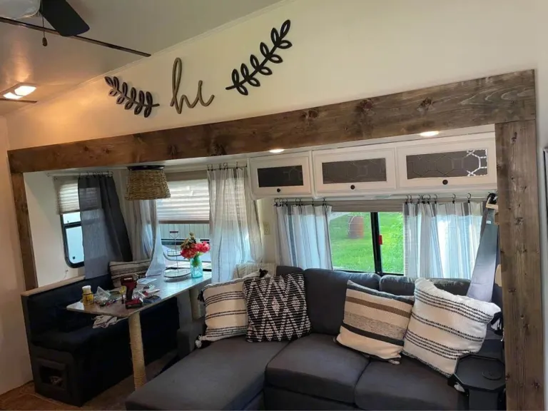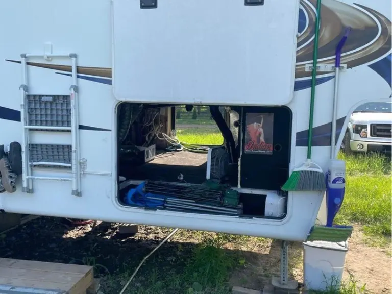 Love to camp but hate the inconvenience of "roughing it," rent this unit for a glamping experience to remember. Our 36ft fifth wheel offers exceptional amenities to make camping more convenient, enjoyable and simple. This unit offers an entertaining space with a fireplace and a flat screen TV, s, pantry, oven, toaster, coffee maker, microwave fridge and freezer. Everything you would need for cooking and more will be ready and available! This unit also has a full sized bathroom, kind sized master suit, and best of all outdoor entertainment! Outdoor entertaining includes outdoor surround system, outdoor kitchen with microwave and mini fridge as well as plenty of outdoor storage!Ce qui est inclusIndoors: coffee and basics, cooking utensils, plates, cups, silverware, bedding, towels, washcloths, dishtowels, hair dryer, soaps and shampoo/conditioners, and tp.