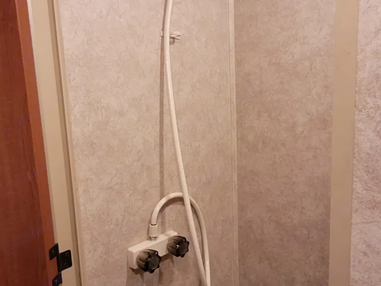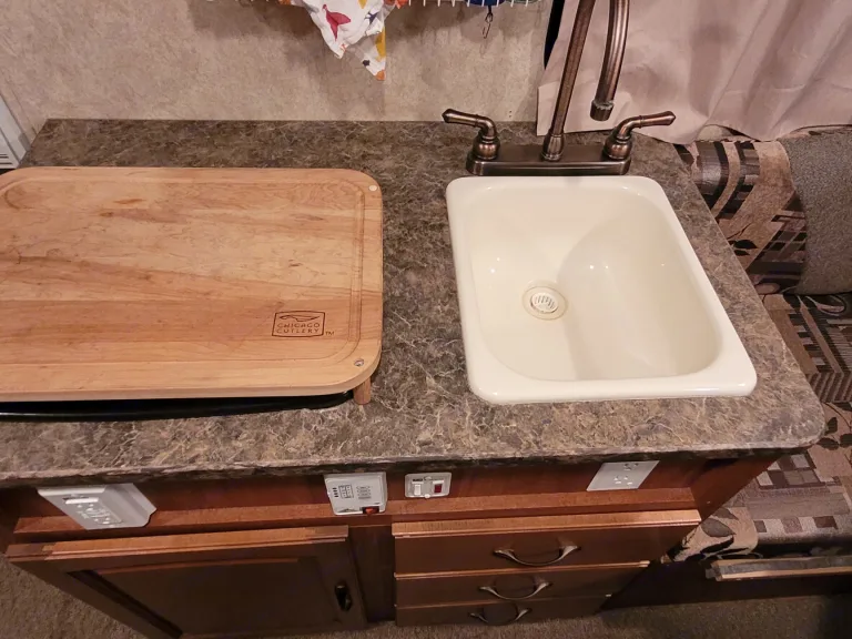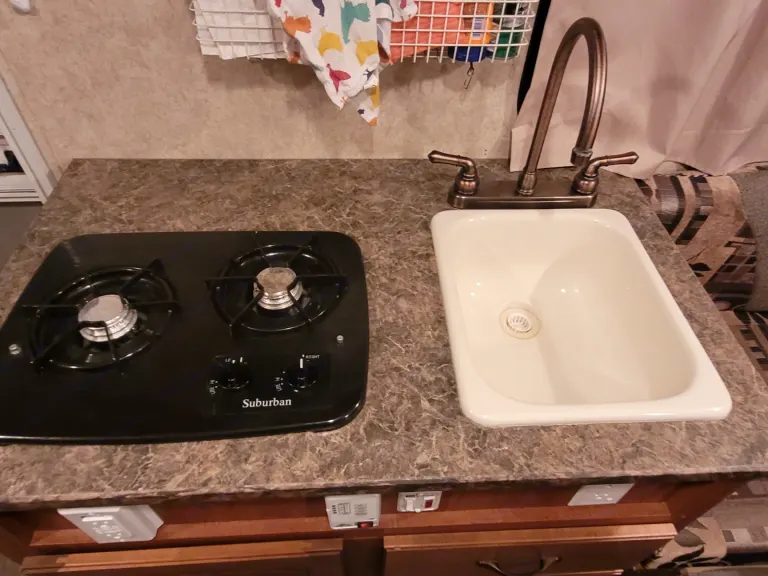The R-pod may be small and light, but doesn't skimp on what my wife calls "the trailer must haves," to make your camping trip an enjoyable one. It has A/C and heat to keep you comfortable any time of year, A bathroom with shower and toilet (so no more going outside at night!) and a 5-gallon water heater. The dinette area converts to a two person bed, and the bunk bed will hold two more. If you can believe it, this small trailer also has a kitchen sink, a two burner stove, a fridge and a microwave. Please see the photos for more details. The R-pod fits our little family of three perfectly and our 2006 4-runner pulls it with no problem.Ce qui est inclusA roll top table