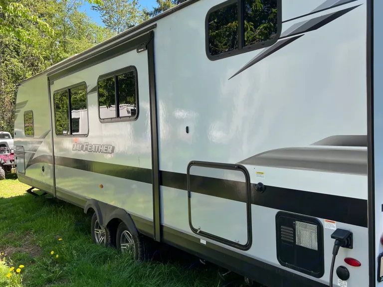 Brand new 2022 fully furnished travel trailer! Ready to connect and go, or be delivered. Bunk beds for 2-3 (2 adults or 3 younger ones), dinette and couch conversions to beds (each sleep 2), and a spacious master (easiest walkaround, no side stepping required).Be sure to checkout the pictures! We are an active camping family and can make suggestions based on our trips if you’re interested.Ce qui est inclusCookware (pots, pans, skillets), Mixing Bowls, Utensils, Coffee Maker, Camping Chairs x4, Sleeping bags x4, 30" Griddle, exterior fridge, all power, water, sewer hoses, leveling blocks, drill with adapter (stabilizers), powered and lighted hitch. Camping garbage can (pop-up with bags), integrated solar panels and controller, dual batteries, large dual 7.5 gallon propane tanks, exterior speakers and more.The master bedroom has a complete linen set to include fresh sheets, comforter, pillows, etc. 4x bath towels, 4x hand towels.Delivery and pickup within 100mi available upon request.RecommandationsMorton (Gust Backstrom City Park) is great first outing with nice hosts and river access, Taidnapam Park on Riffe Lake, Mossy Rock, Silver Cove in Silver Lake (an RV Resort), Wildlife Safari Seven Feathers (OR), Silverwood Theme Park in Couer d’Alene (ID).Autres points à signalerPets welcome w/ deposit (refundable with no damage).