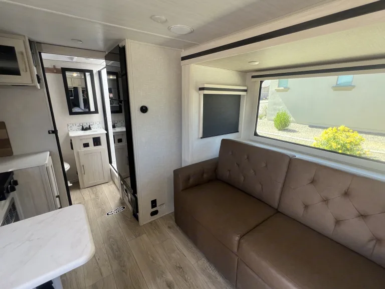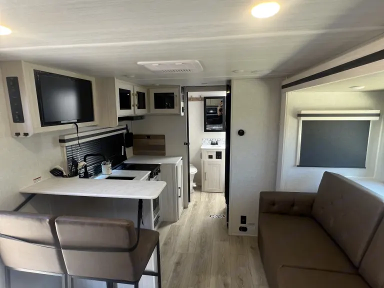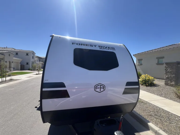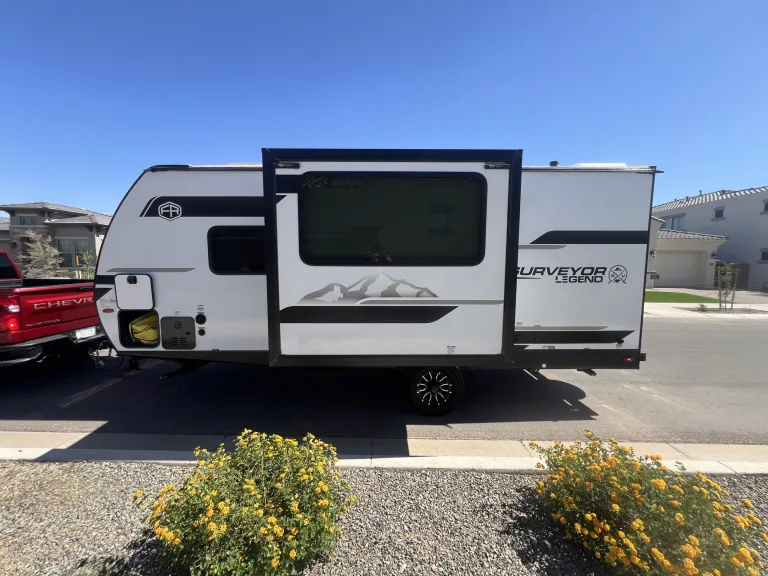 Our 2025 Forest River Surveyor 19Ssle (aka Cozy Cruiser) is the perfect travel trailer for couples or small families looking for comfort, convenience, and easy towing. Lightweight at approximately 4,200 lbs. dry, it can be pulled by many SUVs and midsize trucks.Inside, it sleeps up to four with a front queen bed and a convertible dinette. A slide-out expands the living space, making it feel open and roomy. Large windows throughout help allow you to take in the beautiful outdoor views, providing outstanding ventilation. The fully equipped kitchen includes a 2-burner stove, microwave, large refrigerator, and sink, while the private bathroom features a shower, toilet, and vanity.