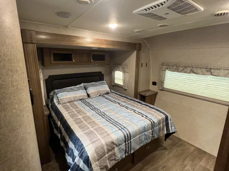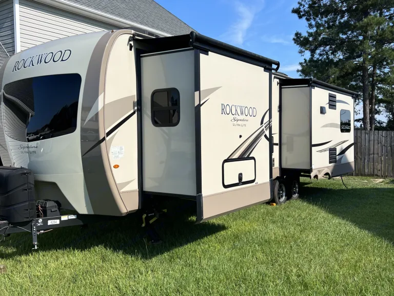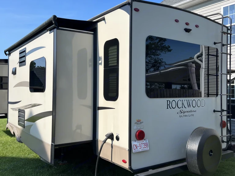This RV is in great shape and has all the amenities that you could ask for in a travel trailer and is ready to go when you are. The inside of the RV is fully equipped with a queen size bed, bathroom with a stand up shower and separate vanity, three burner stove and oven, 10 cubic foot refrigerator and freezer, microwave, double sink in the kitchen, island with two stools, dining table with four chairs, two very comfortable Lazy boy recliners, a couch that pulls out into a bed that sleeps two, 32 inch TV with DVD, stereo system that is Bluetooth capable and has three different zones which allows you to listen outside the RV. The RV has two awnings for shade during the day and LED lighting for hanging out at night. Ce qui est inclusThe RV will come with fresh linens, cookware, utensils and an attachable gas grill (there will be a charge for propane usage). There is also an outdoor rug that you can use to keep the bugs off of your feet and the camper clean. Delivery and pickup within a 50-mile radius available upon request.Autres points à signalerPets welcome!