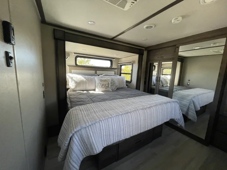 This Luxurious RV is Brand New and ready for your enjoyment. Comes with a fully stocked Kitchen. We also include chairs and tables for outdoor use. Bedding for the King and Linens for the Bathroom are also included. We also have some additional items that we offer as add-ons like Starlink WiFi Internet, Generator, Solo Stove fire bucket, BBQ Smoker, etc... This RV is available for Delivery Only.Ce qui est inclusWe provide linens for the Bedroom and Bathroom in the trailer. There is also 2 camp tables, and 6 camping chairs to use outside. Autres points à signalerTHIS RV IS AVAILABLE FOR DELIVERY ONLY.