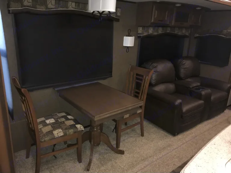Camp in luxury! Available for delivery only, this beautiful 42 foot, 5th wheel bunkhouse with 4 slide outs can accommodate larger families comfortably. Master bedroom has a queen bed with a standard mattress- a real upgrade from the thin camper mattresses! A bunkhouse in the middle of the camper has a couch that folds out into a double bed, and has a small bunk bed for a child. Large couch in the main living area folds out into a queen bed. Additional bonus queen bed above the mid bunk- sleeping bags are recommended for this one as it is somewhere between and queen and king sized bed, so linens don't fit it well. Full bathroom with larger shower and exhaust fan. Kitchen has a propane stove and oven, microwave, center island, and Full Size residential side by side refrigerator. Large pantry for food storage, and additional storage above the seating in the living room. Dinette with 4 movable chairs. Ceiling fan, electric fireplace for additional heat or just to add ambience, ceiling fan and 3 TV's (living room+ DVD, bunkhouse & master bedroom). Indoor/ outdoor sound system. Washer/dryer. Central vacuum system with hose long enough to access the whole unit. 20 foot power awning with remote control and LED lighting. Outdoor kitchen with propane stovetop and mini fridge. Outdoor shower. Furnace and "cold weather package" for chilly nights, and 2 AC units for hot summer days.Ce qui est inclusPortable metal fire pit, camp chairs, pillows, linens and towels, pots/ pans and cooking utensils, plastic plates and cups, some DVD's for rainy days, garbage bags, collapsable outdoor garbage can, outdoor folding camp table, outdoor camp rug.RecommandationsSo many beautiful campgrounds are available in Michigan! Cedar Point amusement park in northern Ohio. We will also deliver to Michigan International Speedway for NASCAR races and music festivals, although many sites do not have hook up, so additional fees for a generator will apply, and some of the amenities require 50amp service (2nd AC unit, washer/dryer).Autres points à signaler$150 set up fee includes cleaning and sanitizing. Delivery only- $5.00 per mile. Music festivals charge an additional $250 for the weekend. Pet friendly! Non- refundable pet fee of $50 per dog. If the rig is left excessively dirty an additional $100 cleaning fee will apply. Please bring sleeping bags if you plan to use the bonus beds above the bunkhouse. 50amp service is needed to run all of the amenities, 30amp can be used, but will not run the second AC unit, or the washer/dryer.