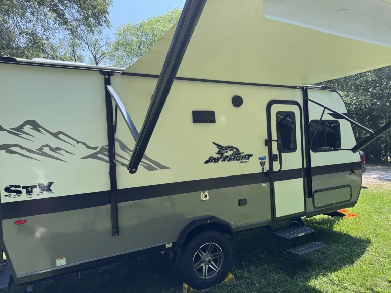 Welcome to your next glamping week/weekend! We look forward to sharing our beautiful, and brand new, Jayco Jay Fight camper with you and your family. Coming in at only 3,145lbs dry weight it can be towed by most vehicles!This camper is top notch for its class, comes equipped with :
