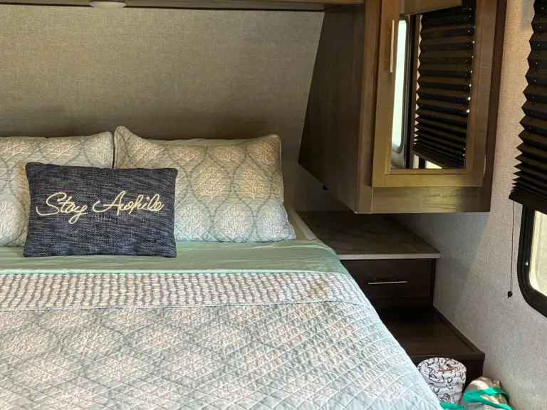 AWNING MUST REMAIN CLOSED WHEN NOT IN USE. DO NOT LEAVE AWNING OPEN WHEN YOU ARE NOT AT THE CAMPER. ISLAND WINDS ARE STRONG AND UNPREDICTABLE. RENTER IS RESPONSIBLE FOR ALL DAMAGE TO AWNING!