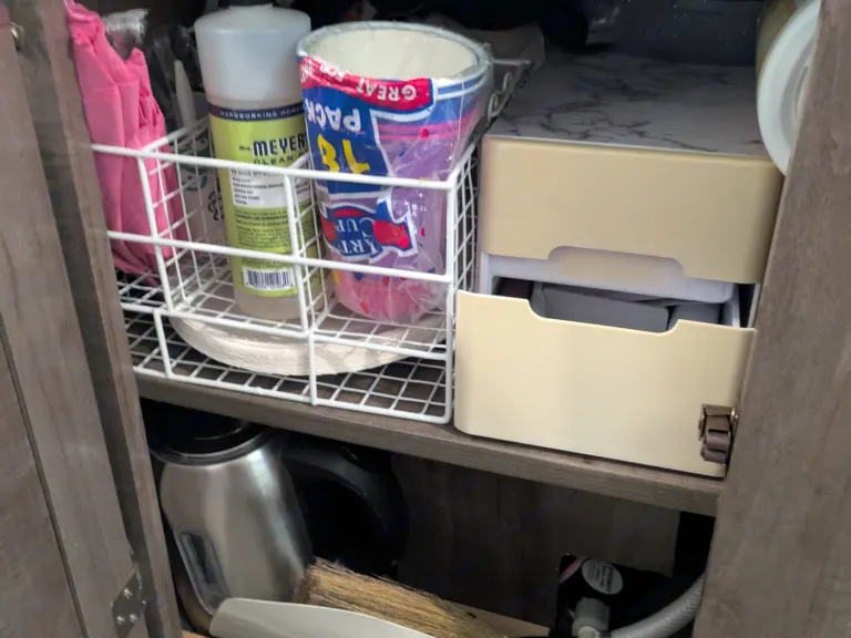 Cooking is easy in the microwave, 3 burner stove, or cook top that works outside. There is a hot water heater and tank or hook up to keep you clean.