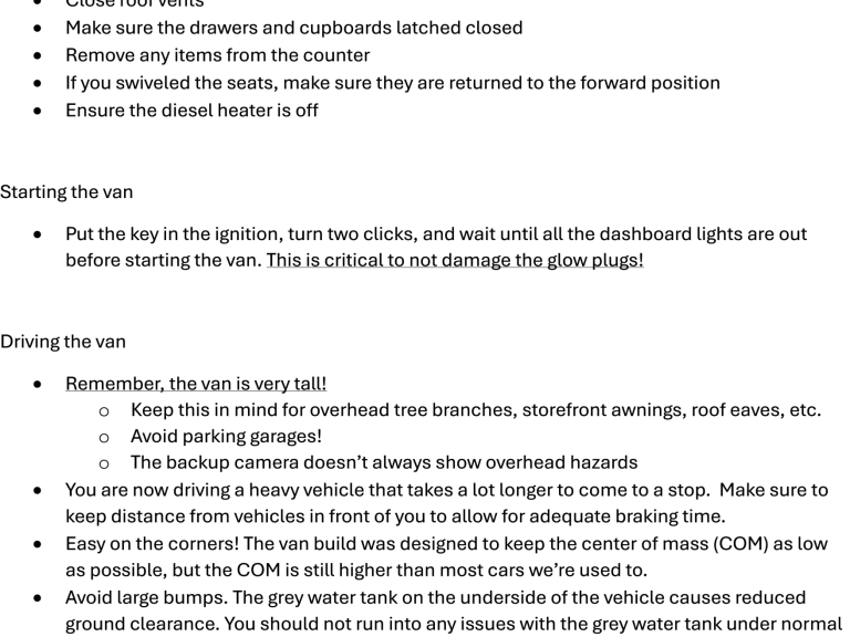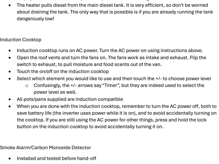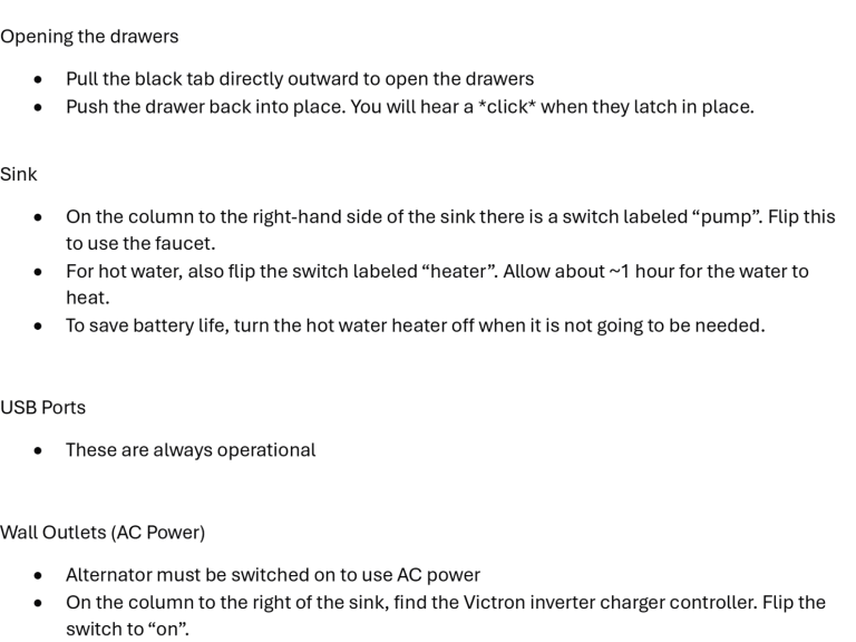 I will supply you with a comprehensive list for operating the van, and everything in the van for your trip, as well as walking you through anything you'd like help with during the key handover. No need to stress!