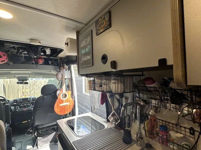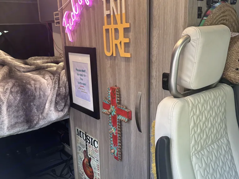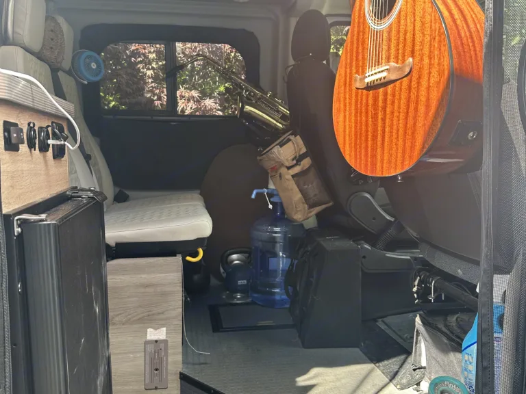 Leveling blockI’ve also added a ton of new hanging storage and most of my knickknacks will be removed so you can put whatever you want itThe speakers have been upgraded and a sub box with a full bass kill switch for people that don’t like bass at allAll the hanging decorations are also super easy to removeAnd it’s available for one way trips. Anything under 12 hours $2000 anything over that $200 plus gas and one way plan ticket for me. Not sure if that’s fair but that’s what I feel my time is worthIf it’s a one way it will need to be switched to a strict cancellation policyAnd if your going to a festival you will need to increase your deposit to $1000 my van does have a trackerCe qui est inclusTons of blankets