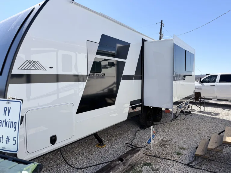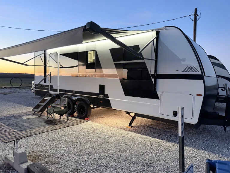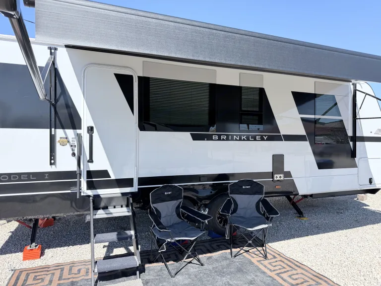 • Load leveling hitch for an extra fee.RecommandationsPicture this: you’re gathered around a crackling campfire, the stars blazing above a tranquil Hill Country night, with the gentle hum of nature surrounding you. Inside our 2025 Brinkley Model I 265, you’re crafting memories that’ll last a lifetime—whether it’s a family laughing over s’mores, a couple rediscovering romance under the power awning, or friends swapping stories after a day of adventure. This isn’t just a camper rental; it’s your ticket to the ultimate Texas getaway!Autres points à signalerDo: Enjoy the awning for shade. Tow carefully (9600lbs, 800 lbs hitch weight). Clean the kitchen and bathroom after use.Don’t: Overload the trailer beyond its weight limit.