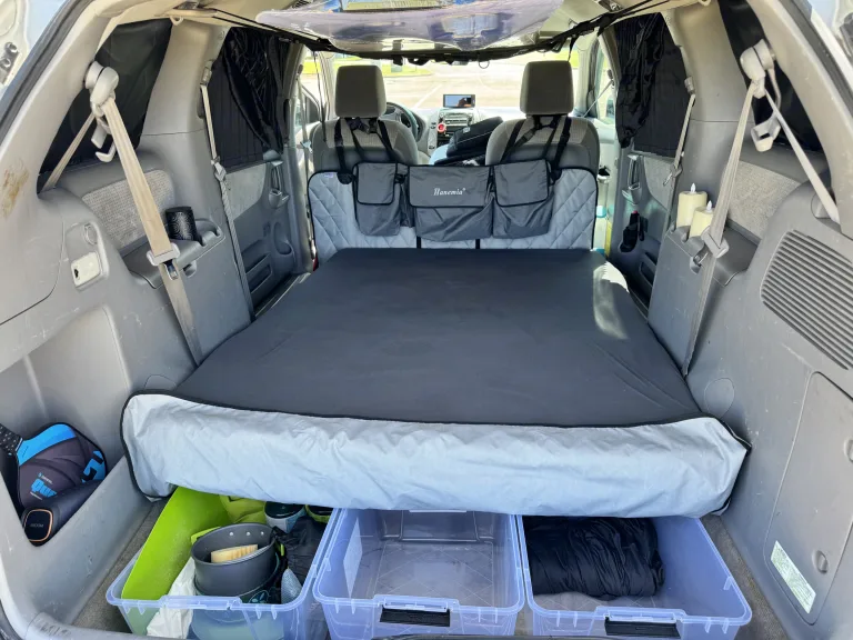 Stay Organized with three stackable storage bins for your gear.This van is for travelers who can pack light, love the outdoors, and don’t mind a little flexibility in exchange for freedom and savings. Whether it’s a beach weekend, a mountain escape, or a park-hopping road trip—this is your mobile basecamp.Just bring your essentials, your sense of adventure, and hit the road!Ce qui est inclus- 6-inch memory foam mattress.