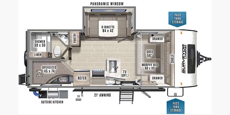 Welcome to the Surveyor Legend's listing! The trailer has a modern farmhouse look and it feels like your home away from home.The Details